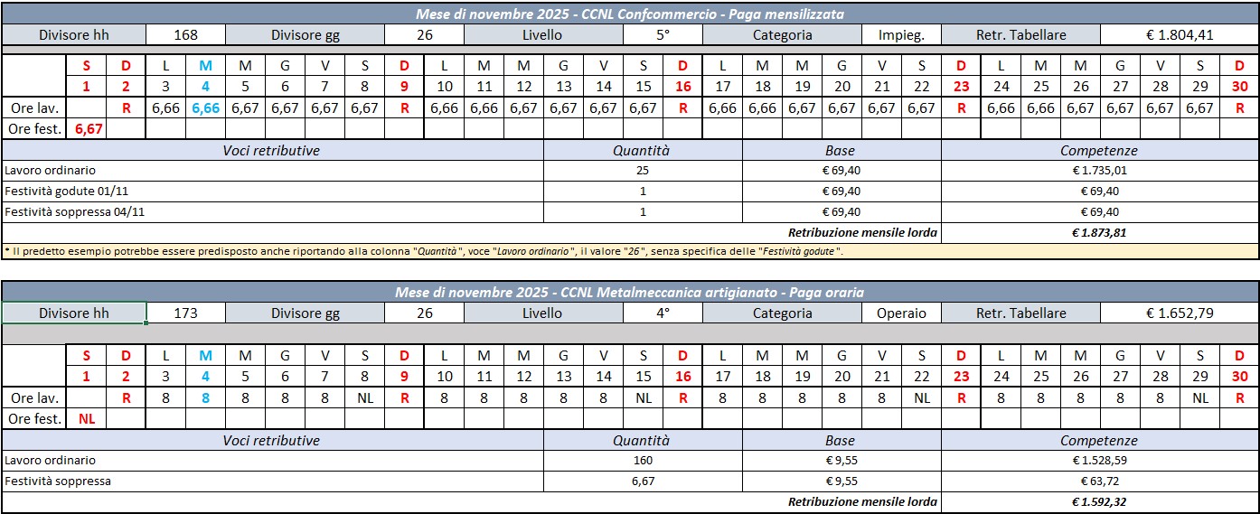A titolo esemplificativo, per l’anno 2025, atteso che il 1° novembre cade di sabato: